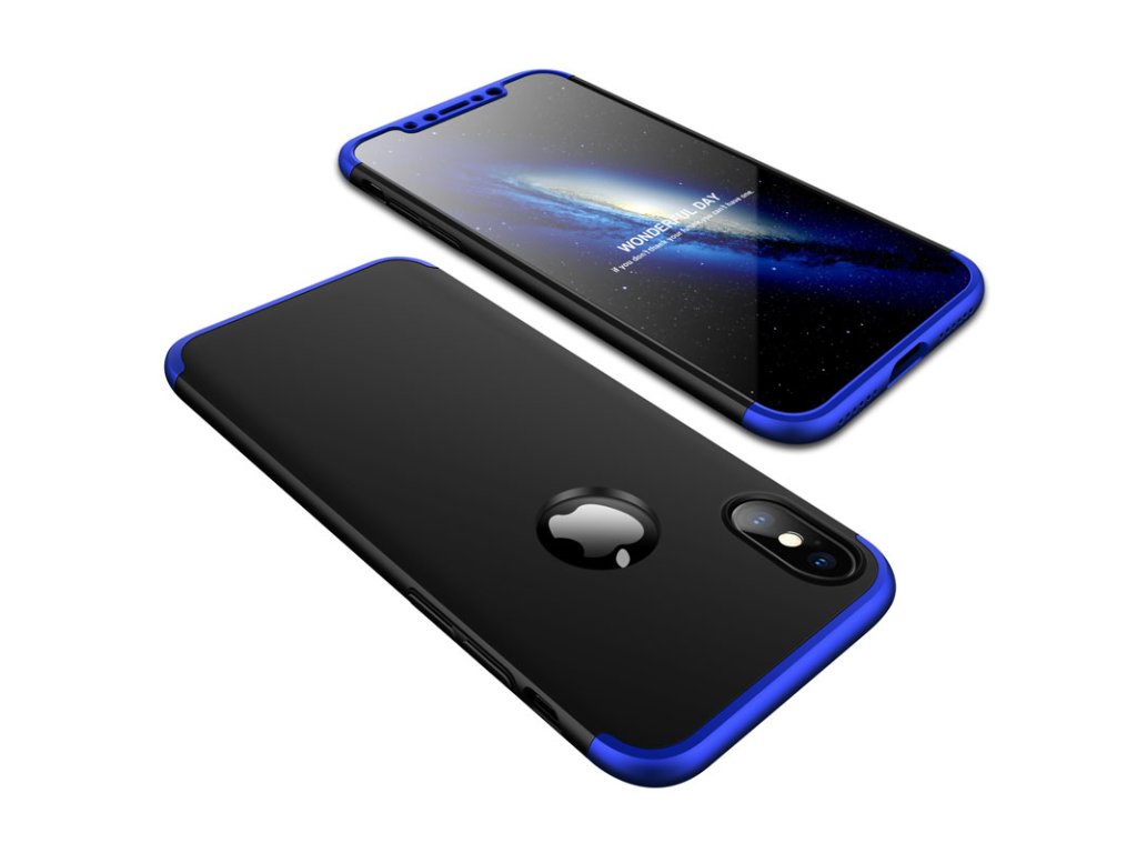 360 oboustranný kryt na iPhone XS Max - černo-modrý