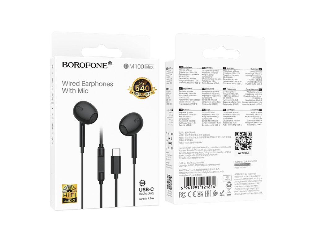 Borofone BM100 Max Fuente sluchátka s mikrofonem USB typ C - černé