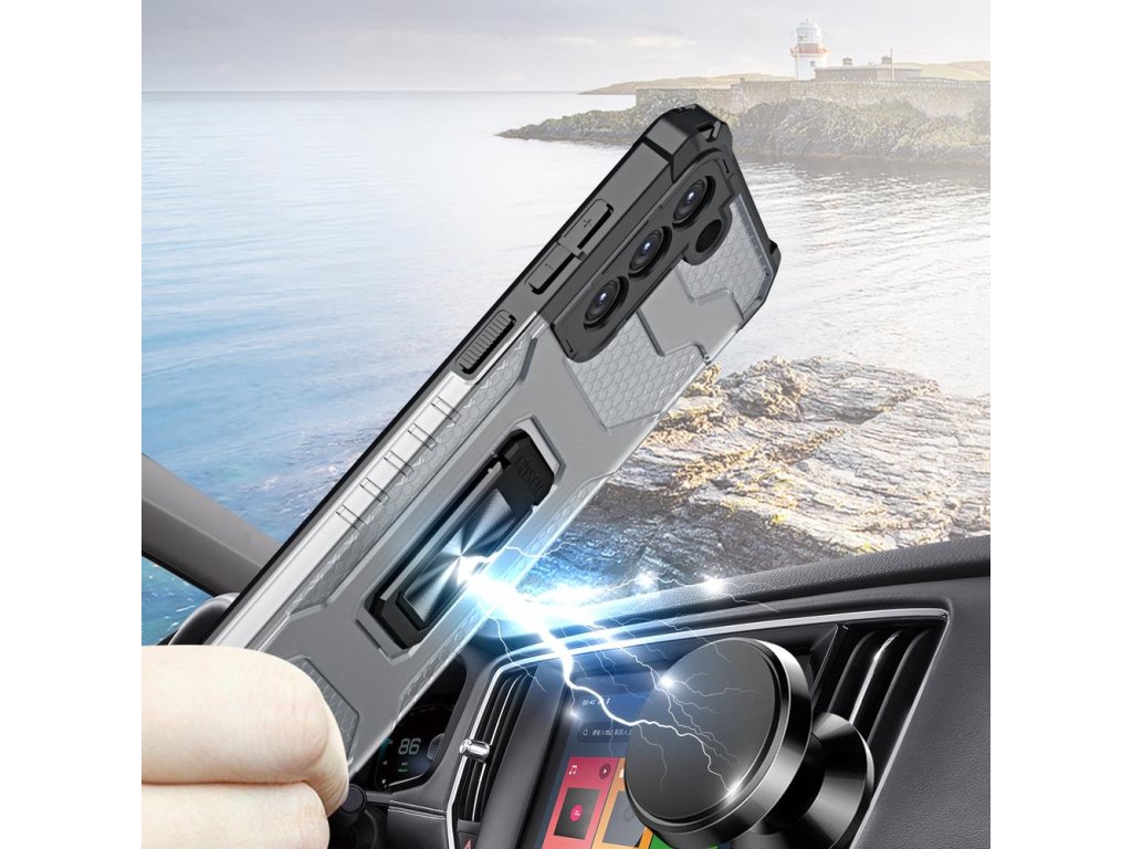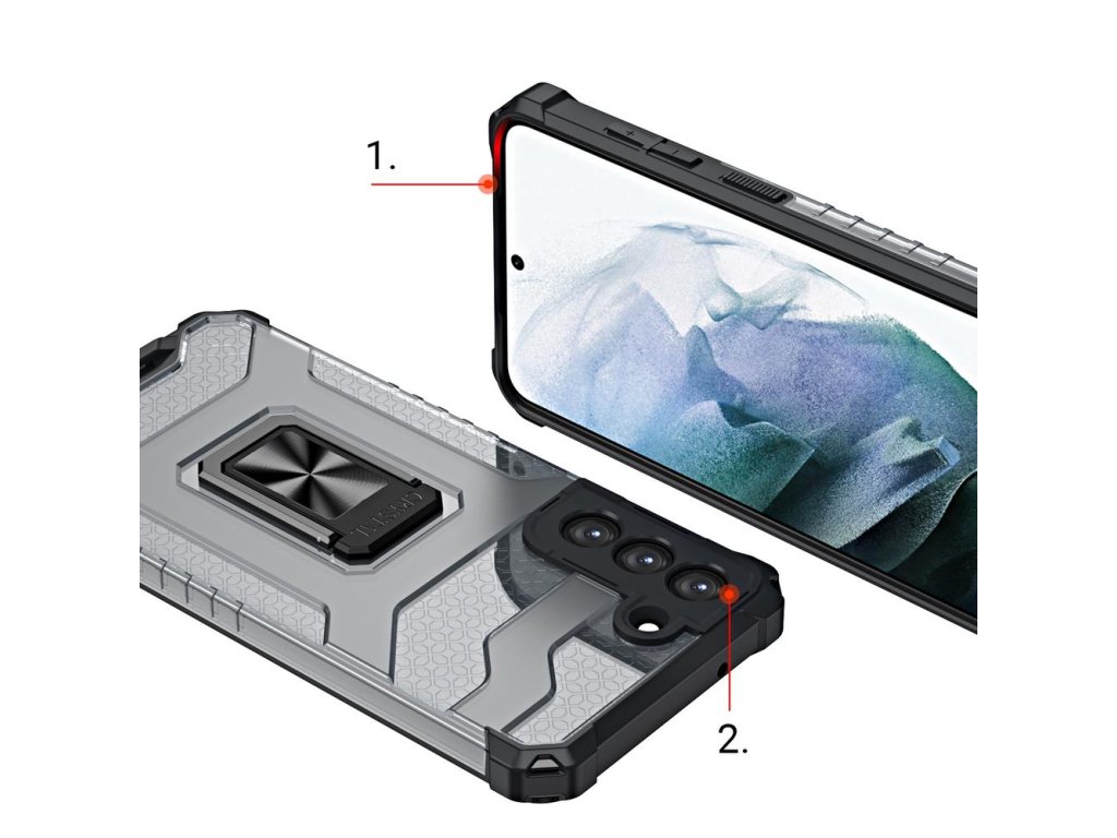 Pouzdro má zabudovaný "ring", tedy prstýnek, který lze použít pro bezpečnější uchopení nebo jako stojánek. Prstýnek je magnetický, proto můžete telefon s nasazeným krytem snadno připevnit k magnetickému držáku v autě.