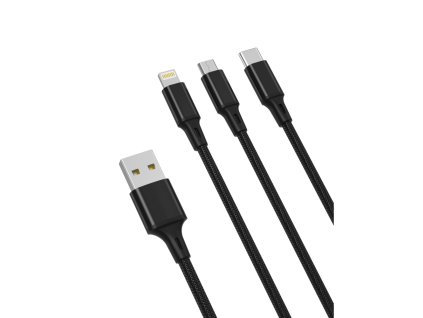 XO kabel 3v1 USB - Lightning / USB-C / micro USB, 1,2 m, 2,4A - černý
